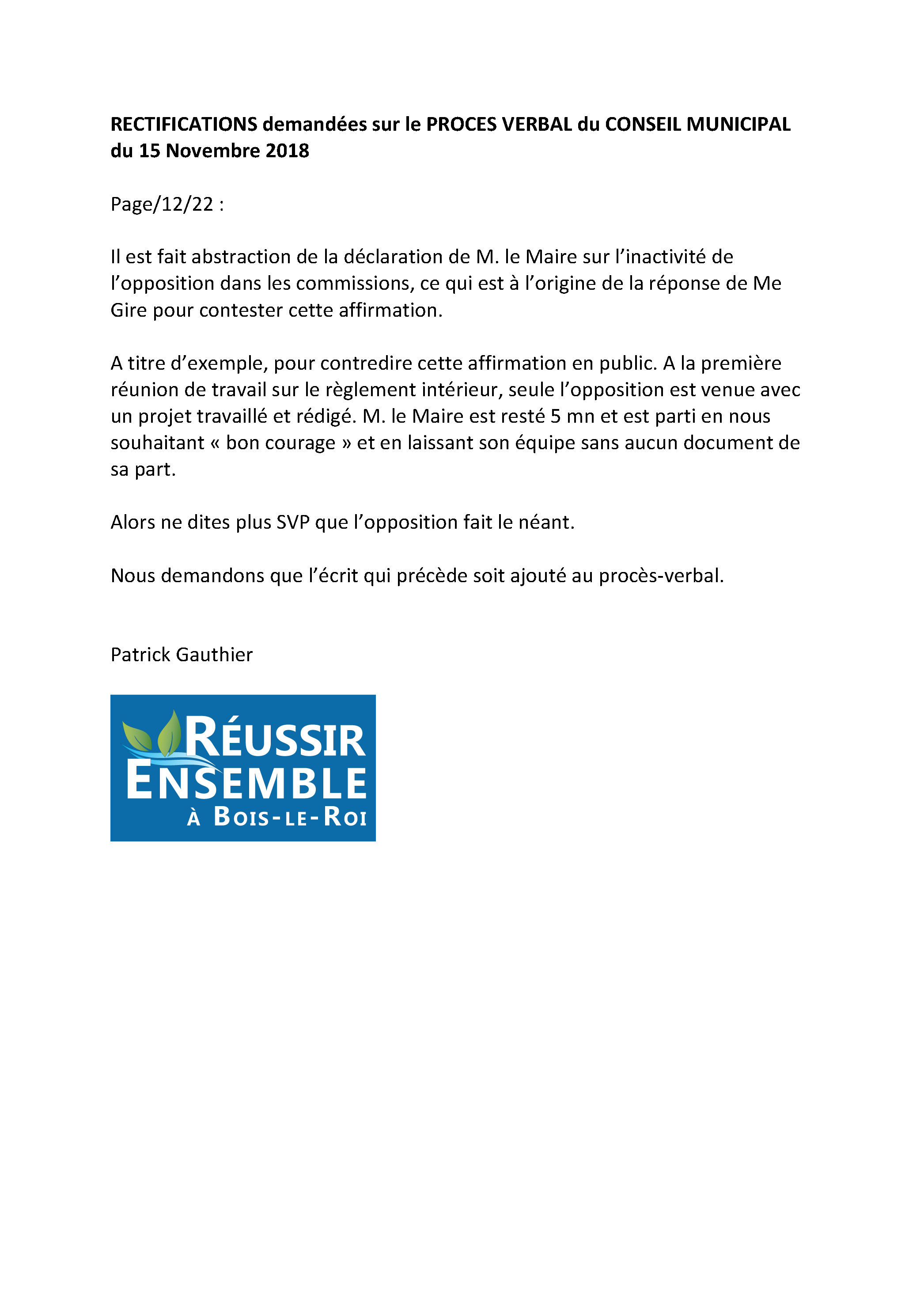 Cela nécessite d’avoir des ordres du jour accompagnés des documents correspondants, de les fournir sur simple demande s’ils ont été oubliés. Ce n’est pas le cas à Bois-le-Roi (Preuve n° 3, n° 4 et n° 5).